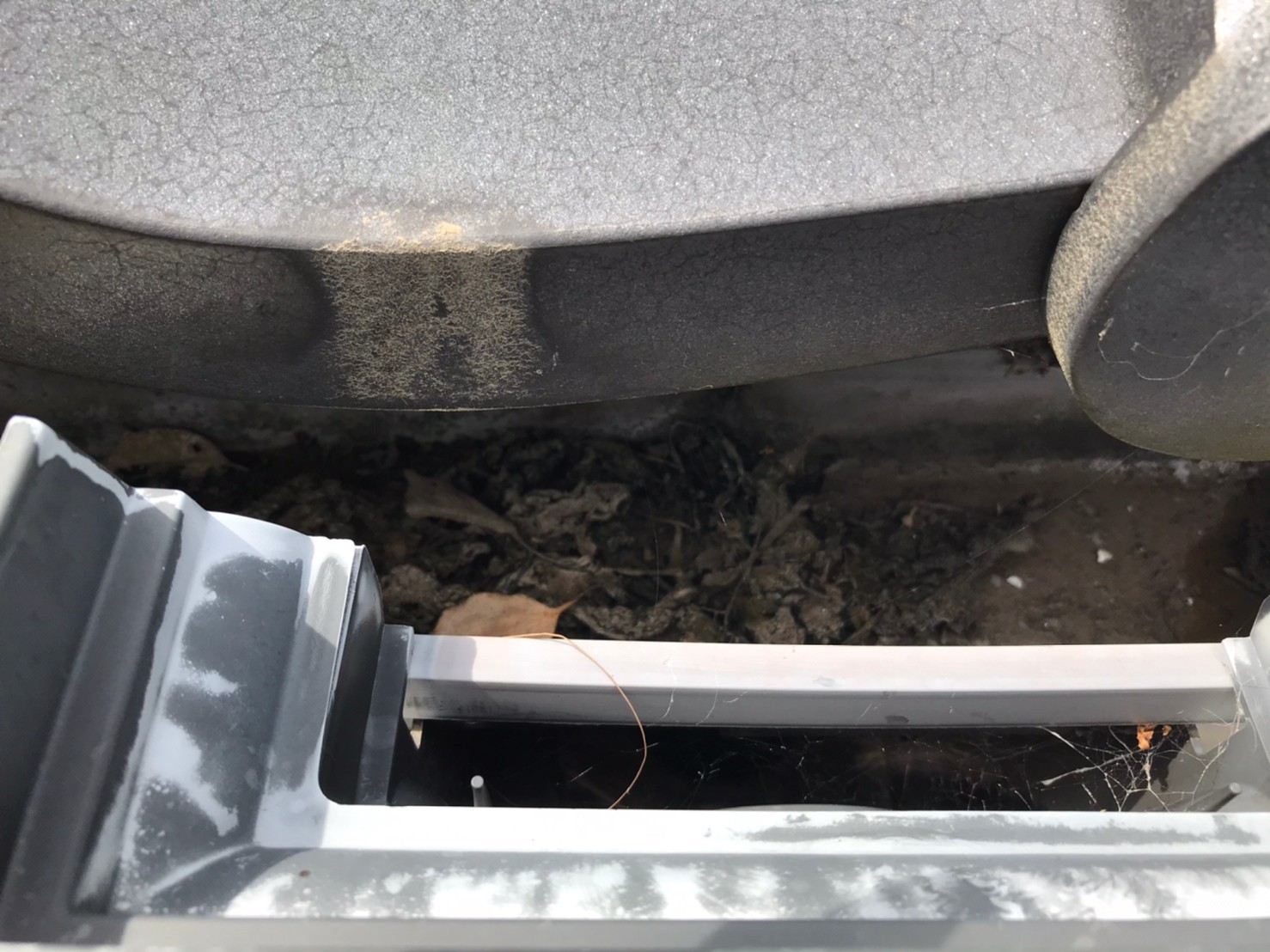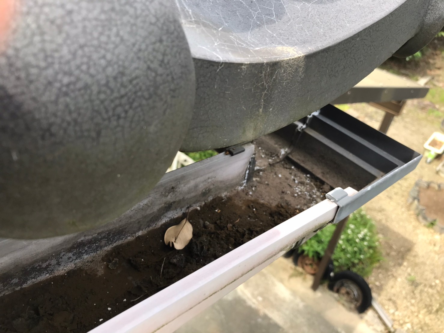 分かりますか??樋に泥や葉っぱがのっています。