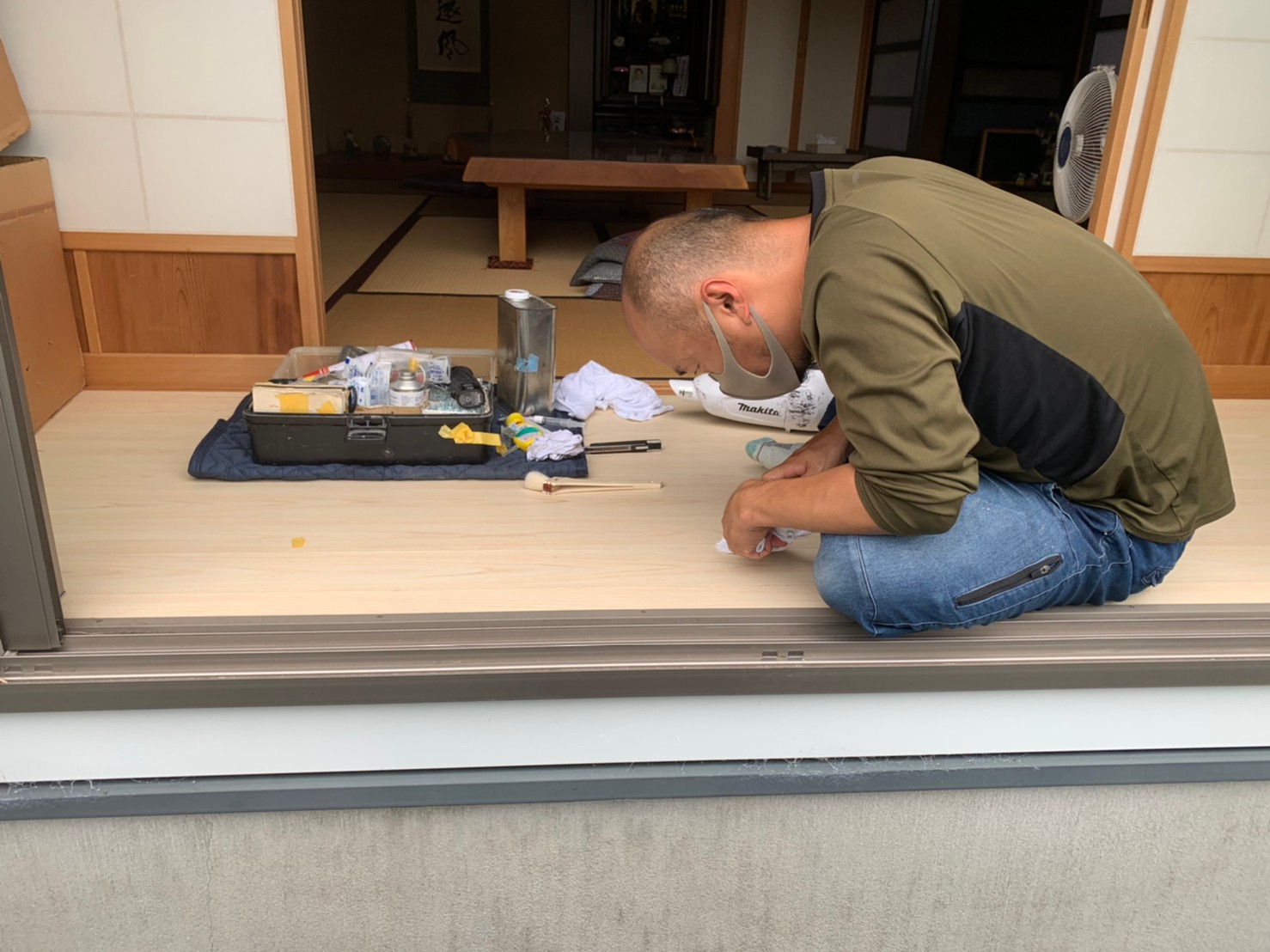 一部剥がれの為フローリングの張り替えではなく床接着作業をすることにしました。