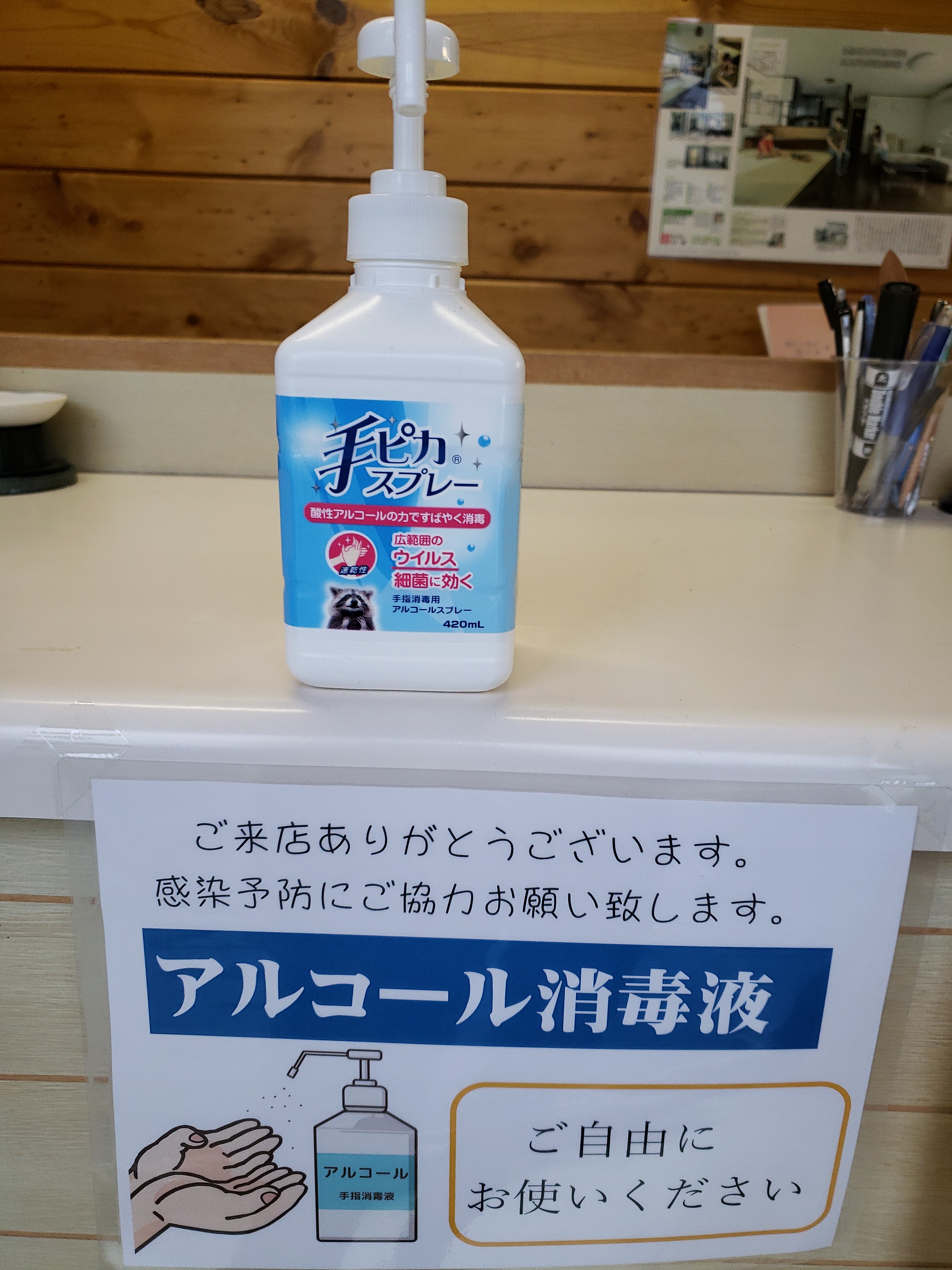 ・アルコール消毒を置いて