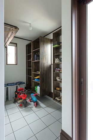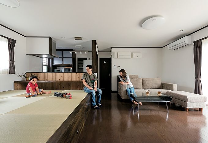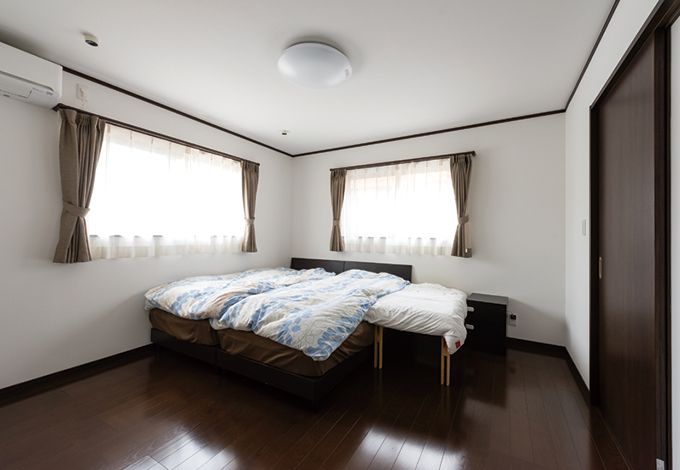 外観も内装と同じトーンで統一。通風を考え、窓を巧みに配置しました。この土地の風の特徴も把握した、地元工務店ならではの施工。