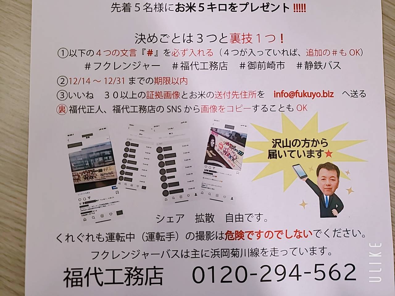 福代工務店に当選番号を確認しに来てください♪