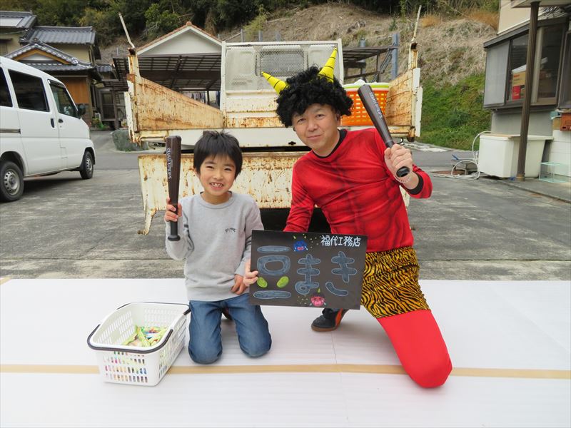 お餅・お菓子まきは高田と阿形が担当させていただきましたよ♪