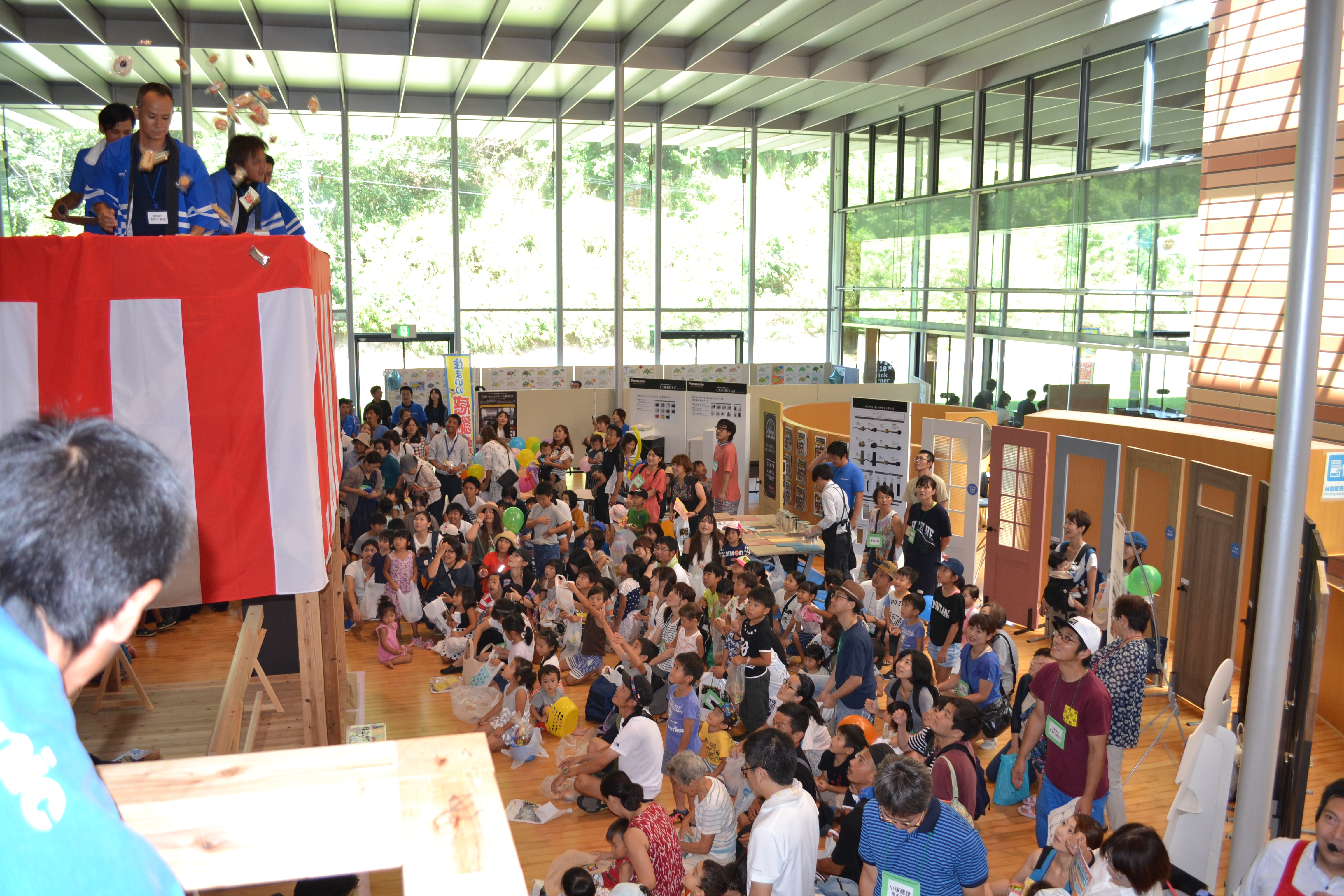 福代工務店スタッフが今年もやぐらからお菓子やお餅をまきますよ~