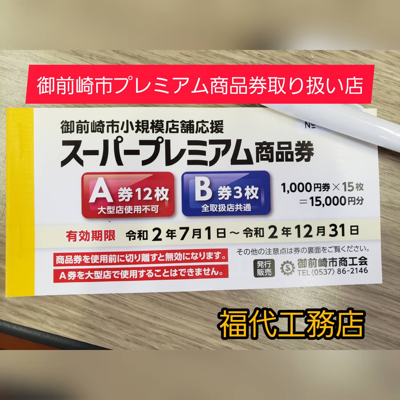 福代工務店で御前崎市プレミアム商品券使えます。